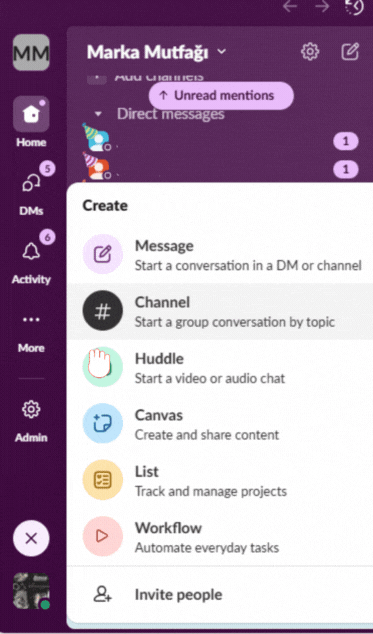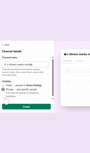 Adımları takip ederek dönem ekipleri için kanal oluşturabilirsiniz.